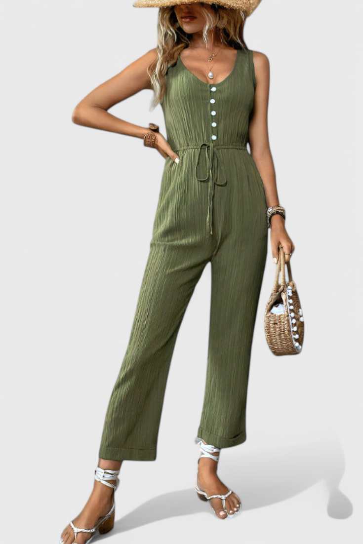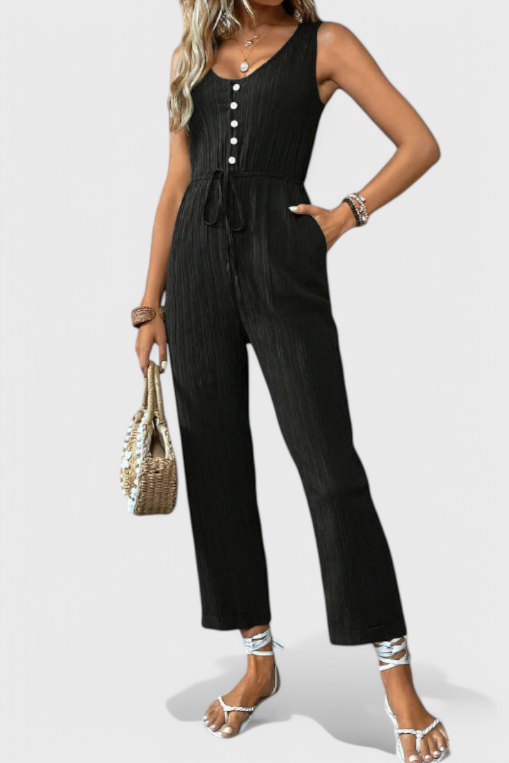 Épuré, respirant et infiniment polyvalent—Marisela est votre choix pour une élégance sans effort. Confectionné dans un mélange de coton texturé, ce mono sans manches présente un décolleté en V flatteur, une taille définie avec une ceinture et une silhouette droite et nette. Que vous sortiez pour un brunch ou que vous vous habilliez pour une soirée d'été, il offre confort et sophistication moderne.