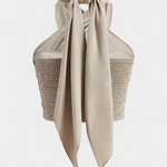 Raffiné et accrocheur, le top Lena redéfinit l'été avec son décolleté halter croisé, son dos froncé et son long nœud. Parfait pour être associé à des pantalons taille haute ou des jupes fluides, ce top apporte une touche sophistiquée sans perdre en fraîcheur et légèreté.