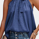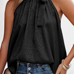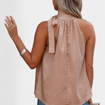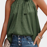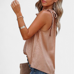Audacieuse et féminine, le top Adela allie l'imprimé léopard classique à une touche sophistiquée. Son col montant avec nœud ajoute une élégance inattendue, tandis que la coupe ample et sans manches garantit fraîcheur et confort lors des jours les plus chauds.